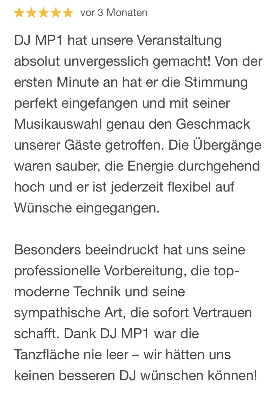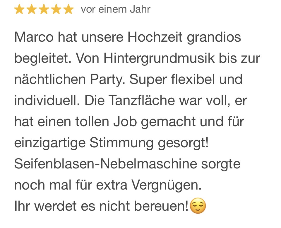 Ich sorge dafür, dass Deine Gäste tanzen, lachen und den Abend nie vergessen - egal ob Hochzeit, Geburtstag oder Firmenfeier. Jetzt Termin anfragen und Wunschtermin sichern.